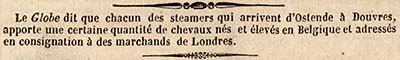 In 1848 bleek er een gat in de markt ontdekt voor het verhandelen van Belgische paarden. In juli dat jaar schrijft een krant dat op de Belgische stomers opmerkelijk veel jonge paarden worden vervoerd naar Dover voor een Londense koopman. De paarden werden in België gekweekt en per poststomer verstuurd. Wat de post betreft was men tegen het einde van dat jaar nog altijd niet tevreden wat stiptheid betreft. Men had ondertussen al de schepen tijdens de nacht laten afvaren om zo het vertrek van de posttreinen te halen. Maar toch kwamen die te laat aan om die post op tijd mee te nemen met de internationale trein. De inwoners van Oostende waren ook al een petitie gestart naar de Minister wegens de afbouw van reizigerstrafiek door de invoering van de nachtafvaarten. Men was bang dat de reizigers meer de weg via Calais en Boulogne zouden gaan nemen. De politiek begon zich ermee te bemoeien en in een Kamerdebat stelde men voor dat de staat de Oostende-Dover lijn maar moest verlaten. De toenmalige Minister D’Hoffsmidt verdedigde de Belgische postlijn met de woorden “Het zou wel eens kunnen goud regenen”. In een stemming werd een deel van de gevraagde kredieten goedgekeurd en vroeg de kamer een rapport en cijfers aan de Minister. Deze laatste had ook al toegestaan om op de lijn kleine pakjes tot 5 kg te gaan vervoeren zonder verantwoordelijkheid en tegen de som van 0,40 Fr. per pakje met bijkomende kosten van Douane en rechten voor de verzender.Het was al van de eerste aanvangsjaren dat de druk bestond om de Oostende-Dover lijn in private handen te krijgen. In het voorjaar 1850 besliste de Minister om voor de zomerperiode van 12 juni tot 1 oktober zelfs op de haven van Ramsgate te gaan varen.
