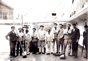 De kapitein Pierre, geholpen door zijn 1e Luitenant Antoine Vandekerckhove en zijn 2e Luitenant Léon Vroome, blijven op de commandobrug.