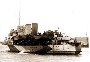 Terug op 18 juni in Falmouth werd beslist om het schip tot landingsvaartuig om te bouwen en vertrok op 5 oktober uit Southampton naar Falmouth. Op 16 mei 1941 werd ze dan omgedoopt tot “H.M.S. Prinses Joséphine Charlotte” en op 1 juni naar Inveraray gestuurd. Blijkbaar had de Prinses Joséphine Charlotte de daarop volgend periode met herhaaldelijk motorproblemen af te rekenen. Daarboven op 7 juli lag ze wegens het slechte weer voor anker in de Solent wanneer een vijandig vliegtuig een bom op het achterschip kon droppen dat het schip penetreerde en aan stuurboord zijde zo’n 17 meter verder buiten het schip ontplofte. In zijn baan door het schip was er veel schade aangericht en liep de tunnel onder water. Ook was er schade aan motorkamer en elektrische apparatuur met gevolg dat het schip voor enkele maanden was uitgeschakeld.