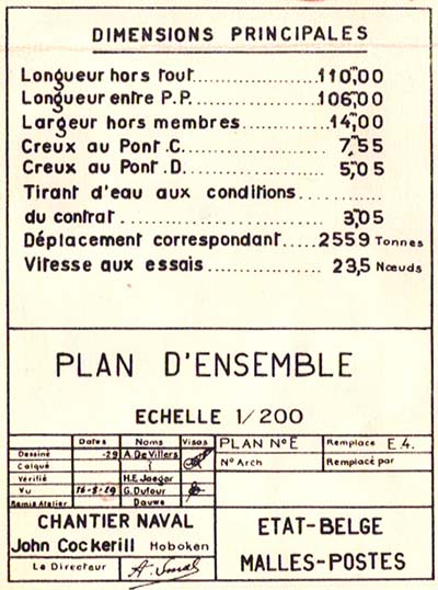 De Prinses Joséphine Charlotte werd op 28 juni 1930 bij Cockerill als yardnummer 644 te water gelaten.