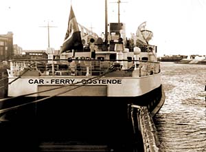De eerste car ferry werd in 1949 in dienst genomen. Dit schip was achteraan voorzien van een poort waar de auto’s via een brug konden worden geladen en waar de reiziger zelf het voertuig aan boord kon rijden. Het kreeg de toepasselijke naam “Car Ferry” en werd te Cockerill gebouwd als bouwnummer 731. Het werd te water gelaten op 18 september 1948.