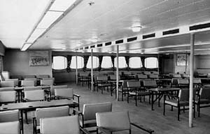 Men had nog de laatste jaren aanpassingen gedaan in een benedenruimte om daar een bar te installeren met het oog jongeren een ruimte tijdens de overtocht .Men had deze ruimteniet aangekleed maar enkel in paarse kleur geschilderd. Daar kon de stevige contructie van het schip duidelijk waar nemen.