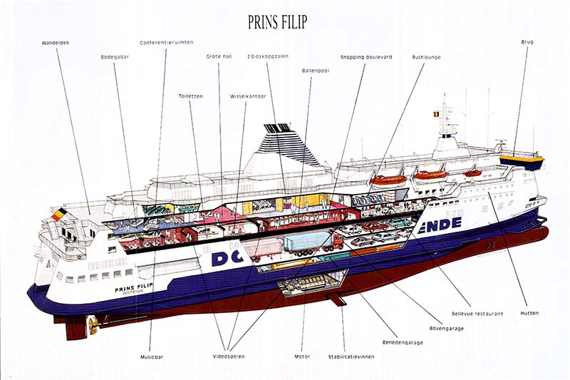 Vanaf de start werd er heel wat promotie voor dit schip gevoerd. Het schip had namelijk alles te bieden om een aangename overtocht te garanderen. Onze taak als assistent purser was meestal om toe te zien dat alles goed verliep. Zo was er regelmatig een actie van groepen die het Business dek hadden gehuurd voor een conferentie of activiteit. Of zelfs met valentijn konden op een nachtreis verliefde koppeltje een reisje maken en werden eens in de watten gelegd in het restaurant . Na het uitgebreid tafelen kon men naar de cinema of nog een bezoekje aan de bar brengen om dan tijdens de terugreis in een hut te verdwijnen voor een dutje. Of ja, je weet wel. Non-Landing passengers zoals we dat noemden. Men kon zelfs boeken met de wagen en nog wat blijven slapen na aankomst te Oostende. Stay Overnight boeking heette dat. ’s Morgens werden dan de reizigers gewekt en een ontbijt aangeboden in het restaurant vooraleer te ontschepen en hun reis verder te zetten.